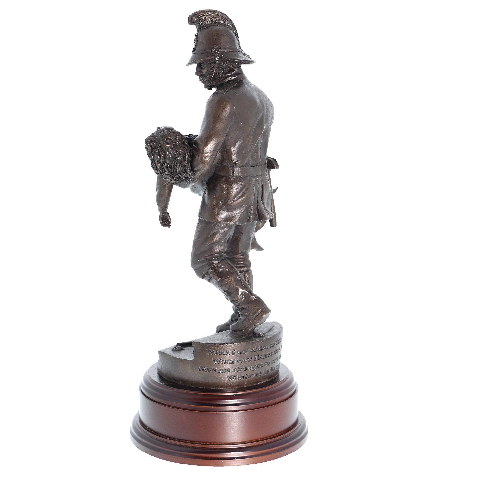 Engraving on a statuette is included in the price. There is enough space to allow up to 3 lines of text – with a maximum of 35 characters per line. Engraving information must be emailed to shop@firefighterscharity.org.uk, we are unable to accept this over the telephone.