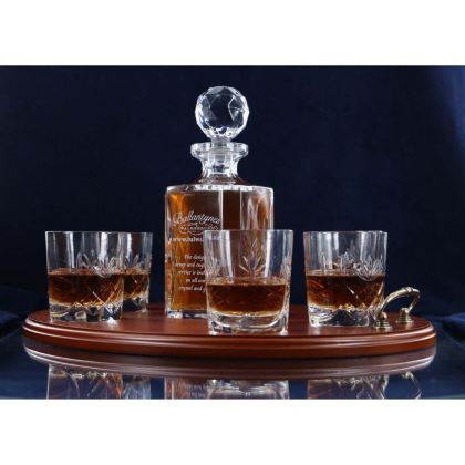 Brigade Engraved Panel Cut Whisky Decanter with 6 Tumblers Tray Set, Boxed - H20H