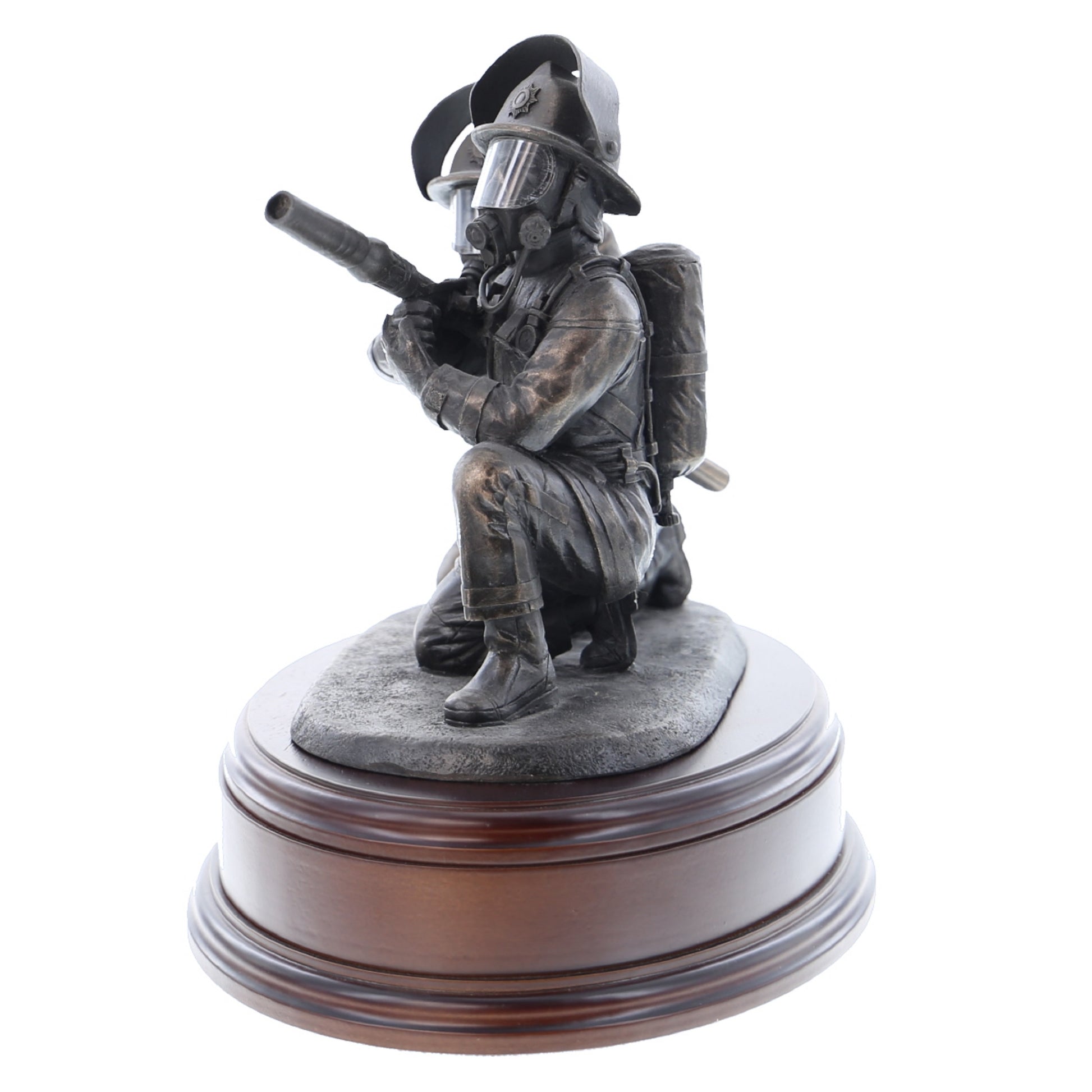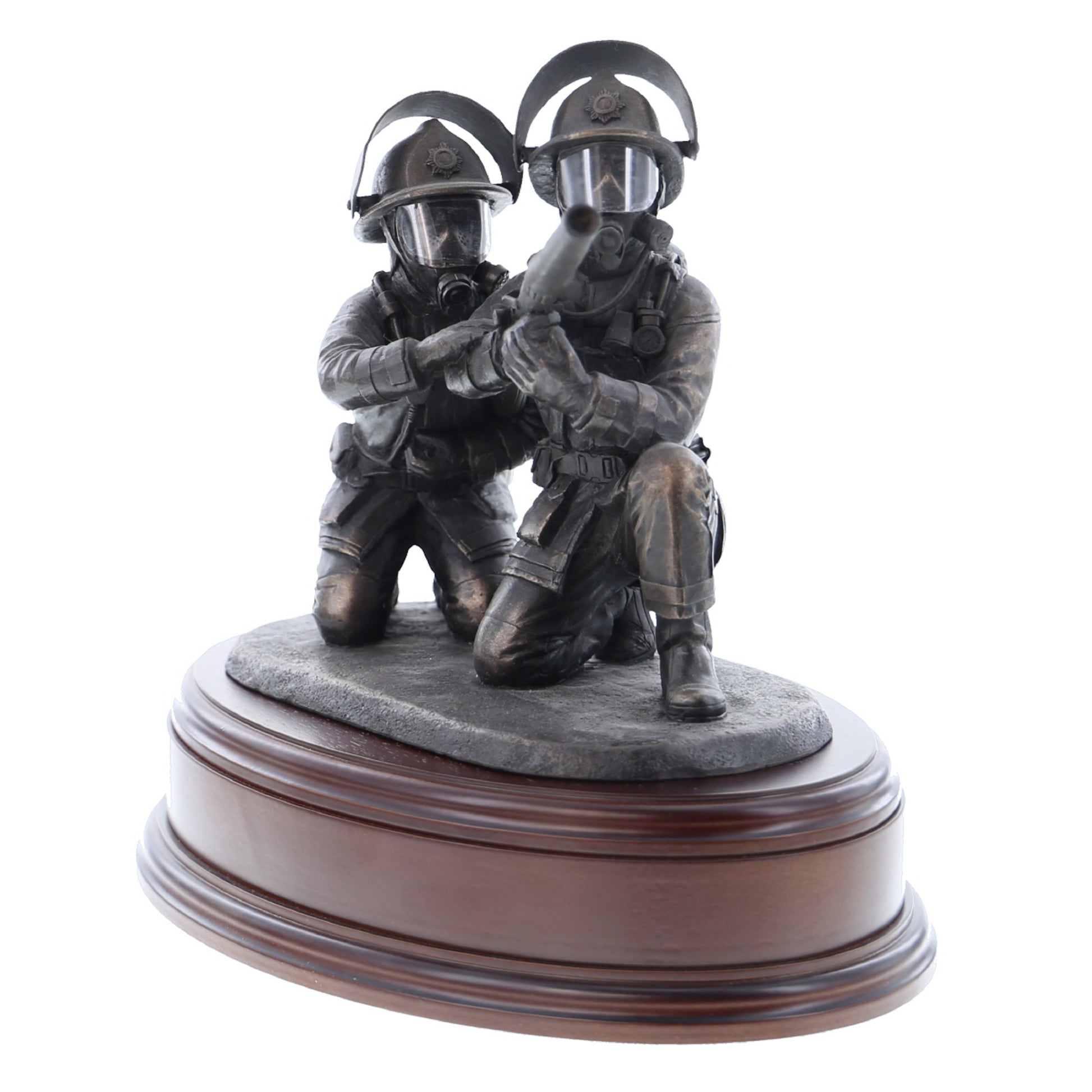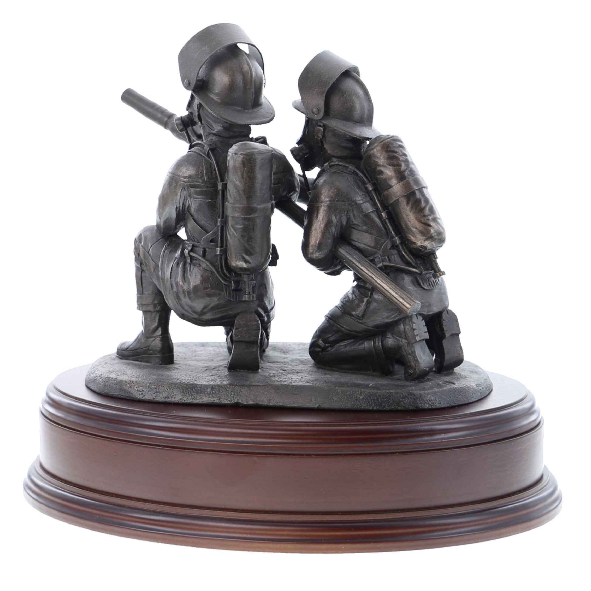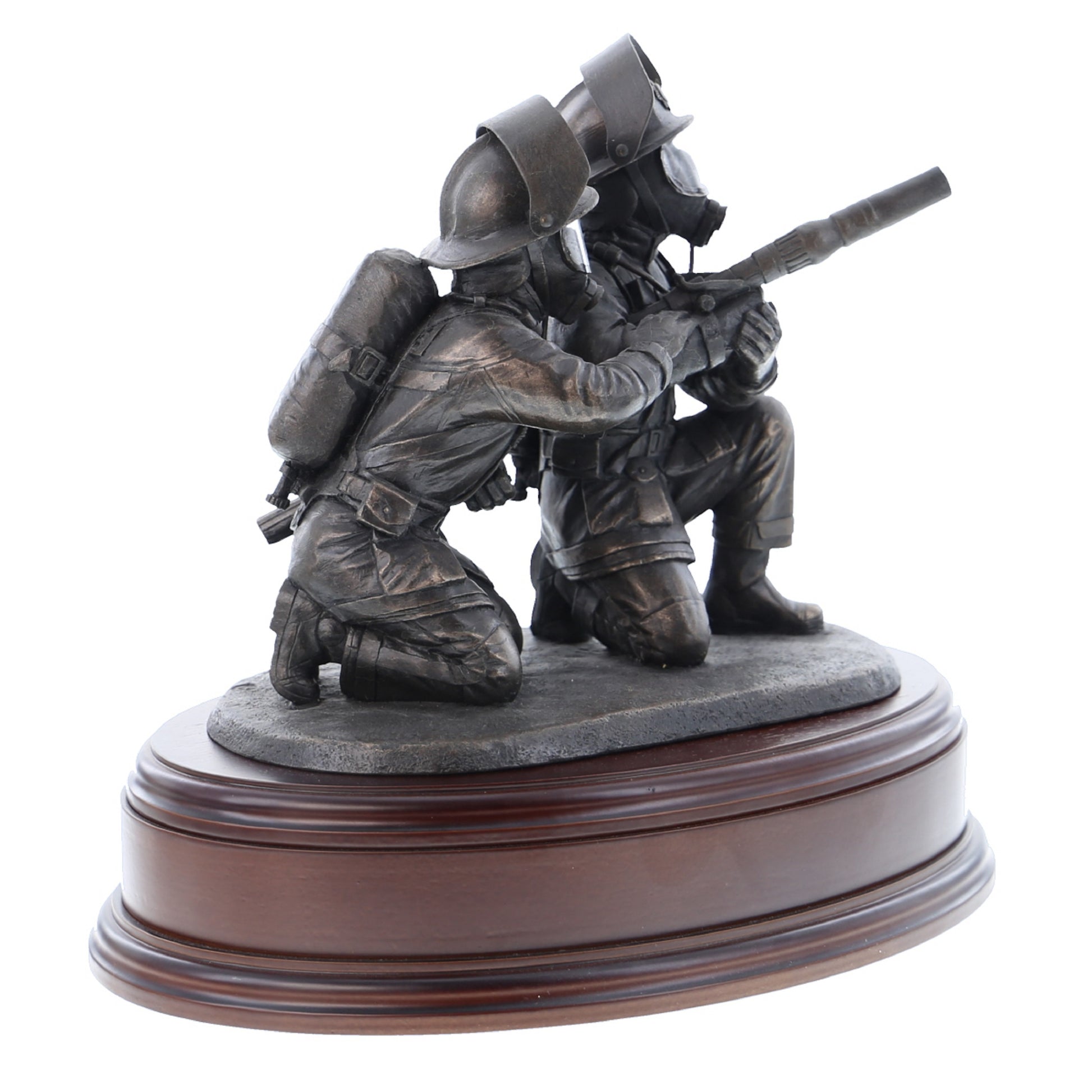 This 8" statuette of two crouching firefighters laying foam using a branch makes the perfect gift or collectible.