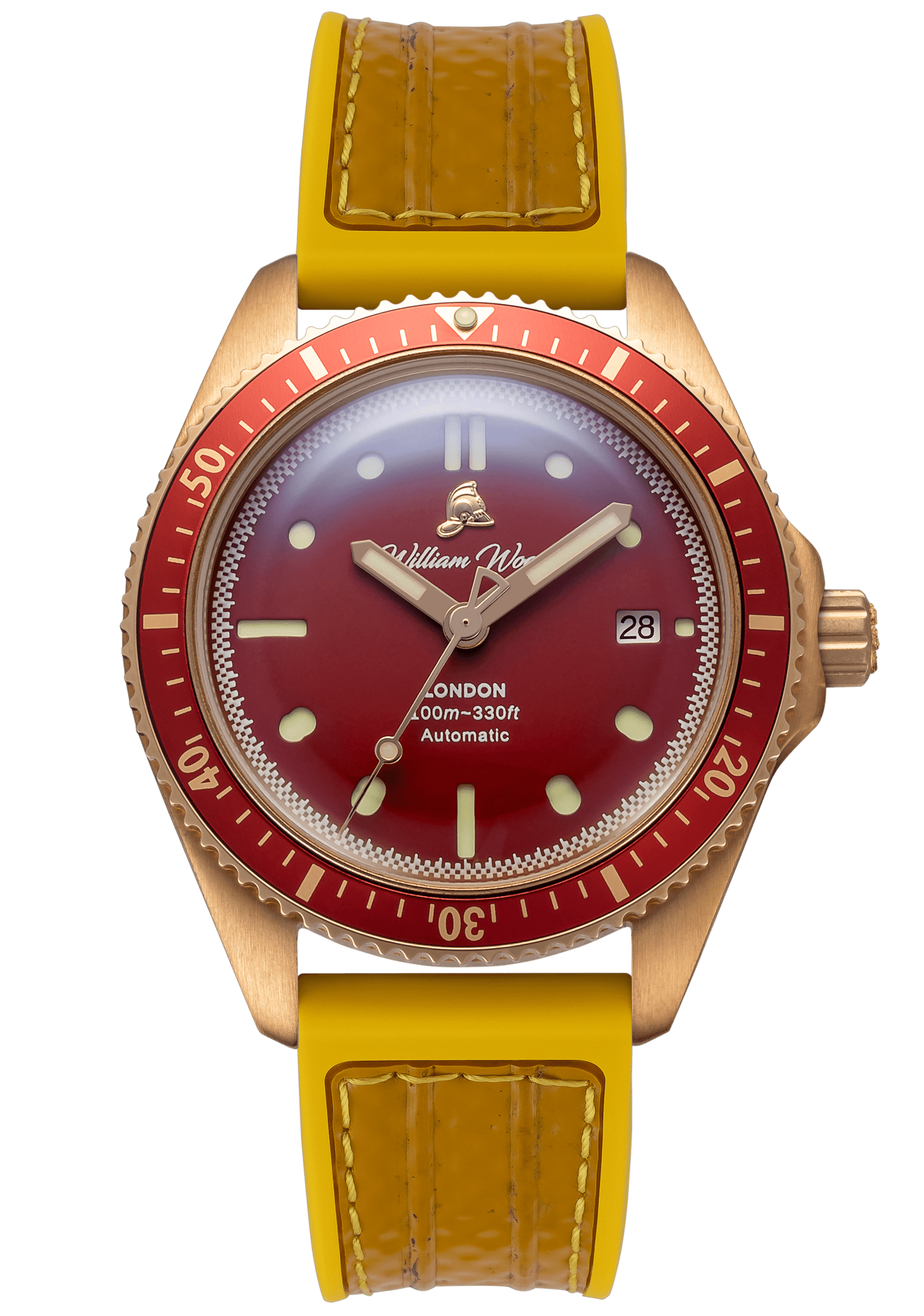 Our Bronze Collection from our heritage range offers our iconic clean Valiant design in a bronze case. We offer two watch colour options in Sapphire and Ruby that compliment our aged bronze case beautifully. Our Bronze Collection is compatible with our full range of upcycled fire hose and fire gear straps. It is a great everyday watch paying home to our firefighting heroes internationally.