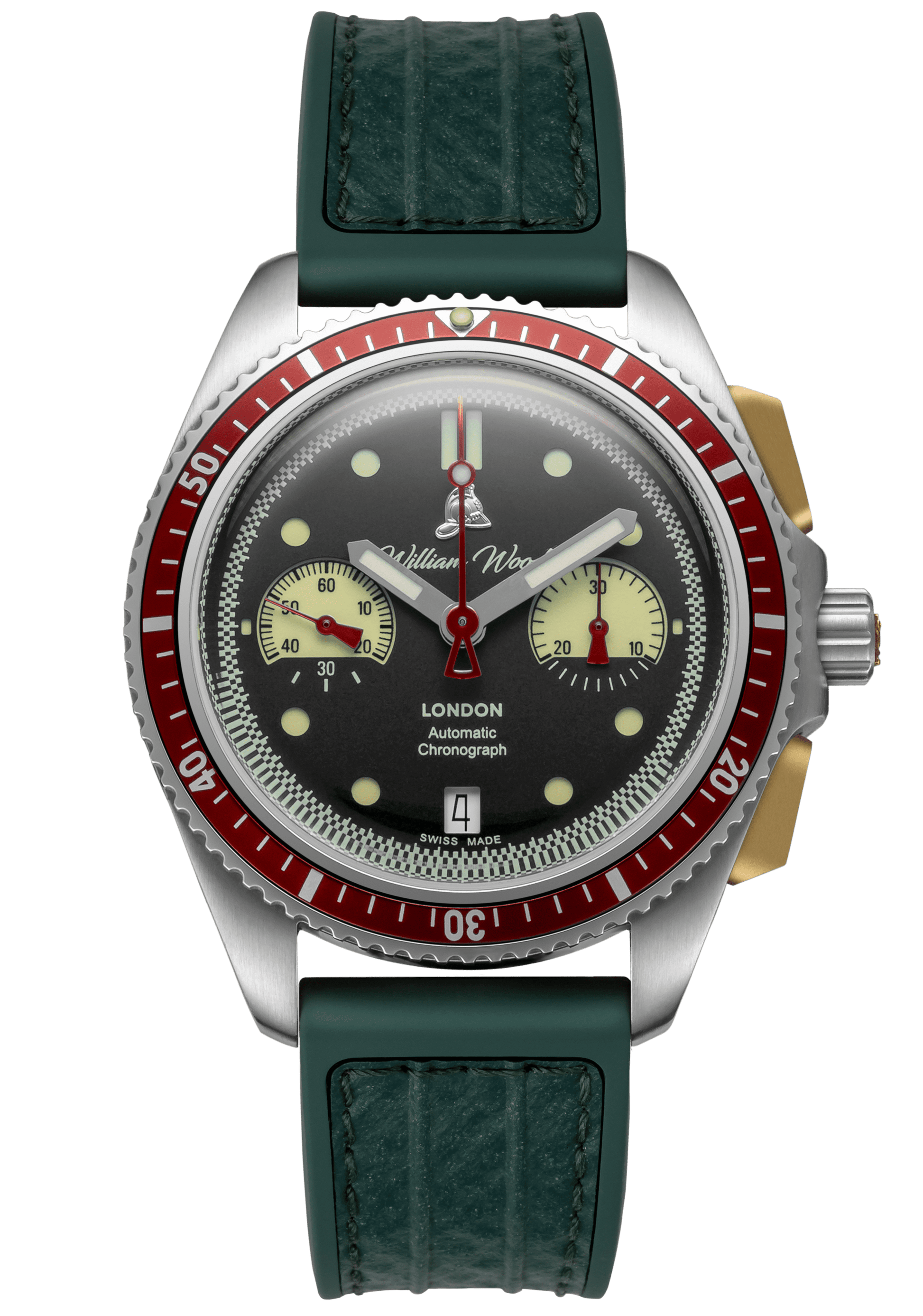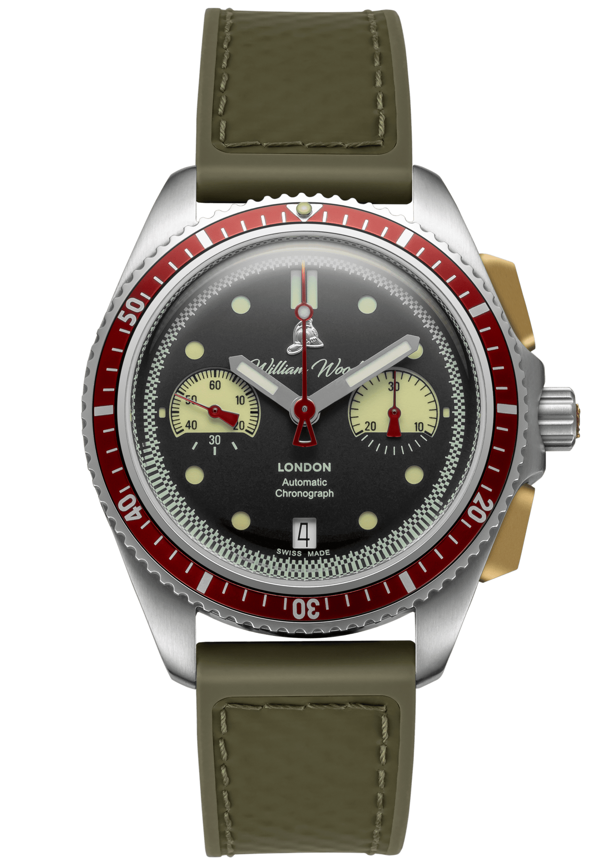 - Super-LumiNova – William Wood Watches wanted this to be a watch you could wear everyday. No matter what the job! By having Super-LumiNova on the sub-dials, indices, hands and bezel, you can follow the time no matter how dark your environment may be.